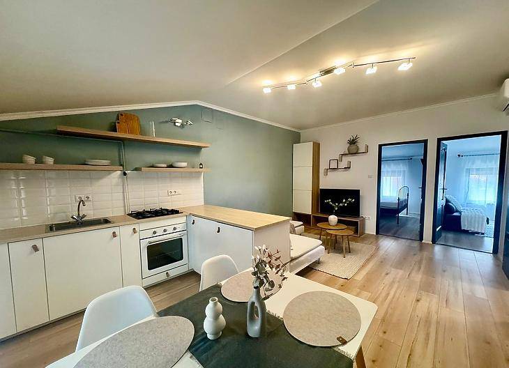 Eladásra kínálunk Dunakeszi legkeresettebb, csendes részén, az Alagliget lakópark egyik hangulatos zsákutcájában egy 51 m2-es, 2021-ben felújításon átesett, tehermentes lakást. Az ingatlan egy 2008-ban épült, mindössze 6 lakásos társasház első emeletén található.• Azonnal költözhető: Nem kell a felújítással bajlódnia – a lakás makulátlan állapotú.• Teljes bútorzat az árban: Igény esetén a teljes bútorzattal együtt eladó, így akár egy bőrönddel is érkezhet. (A bútorok benne vannak az árban.)• Alacsony rezsi költséggel: A lakás fenntartása kiemelkedően gazdaságos.• Modern kényelem: 2025-ös hűtő-fűtő klíma, padlófűtés a közösségi terekben, és 2021-ben megújult gépesített konyha várja.• Dupla parkolás: A vételár tartalmaz egy zárt, fedett parkolót és egy második saját beállót a ház előtt.Elosztás és felszereltség:• Világos amerikai konyhás nappali + 2 külön nyíló, kényelmes hálószoba.• Zuhanyzós fürdőszoba.• Egyedi gázkazán: padlófűtés a nappali-konyha-étkező zónában, radiátorok a szobákban.• Privát szféra: A zárt lépcsőházból nyíló emeleti szinten ez az egyetlen lakás található.Környék és lokáció:A ház egy átmenő forgalomtól mentes zsákutcában fekszik, ahol a biztonság és a csend alapvető.• Gyalogosan pár perc: Iskola, buszmegálló, gyógyszertár, kisbolt.• Autóval 5-10 perc: M2 autópálya (gyors bejutás Budapestre), Duna-part, vasútállomás és nagy bevásárlóközpontok.Az ingatlan per-, teher- és igénymentes, megfelel a 3%-os hitelkonstrukció feltételeinek is.Kérdésével, illetve megtekintési szándékával keresse irodánkat! Amennyiben hitelre lenne szüksége, profi hitelközvetítő kollégáink díjmentesen állnak rendelkezésére, és segítenek megtalálni a legmegfelelőbb hitelkonstrukciót az ország összes pénzintézete közül. |