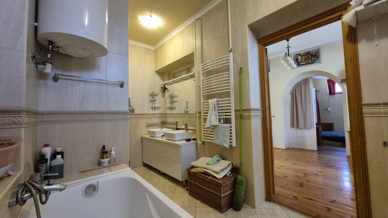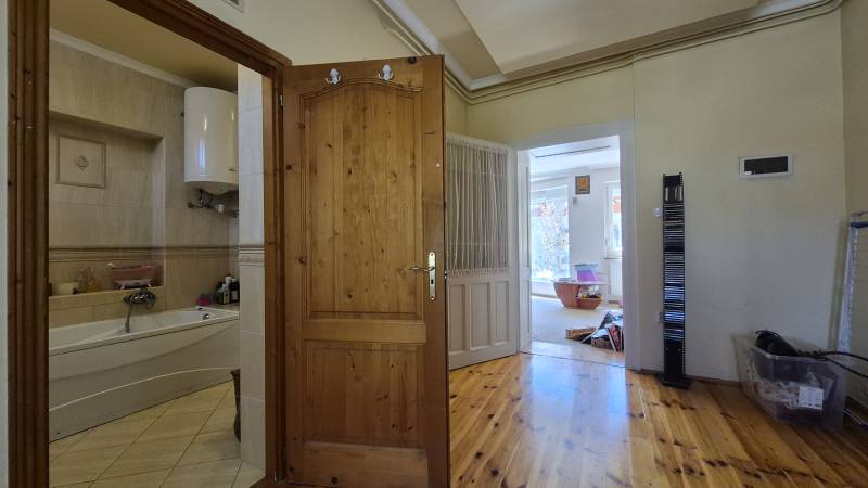 A családi házból most folyik a kiköltözés! Eladó polgári hangulatú családi ház Békéscsabán, a Klapka utcában Békéscsabán, a Klapka utcában kínálunk megvételre egy kb. 130 m²-es, polgári jellegű, tágas családi házat, amely kiváló választás lehet akár nagyobb család számára is. Az ingatlan közepesen jó, lakható állapotú, ugyanakkor kiváló adottságainak köszönhetően egy felújítás után igazán különleges, egyedi otthonná alakítható.- Főbb jellemzők,- Kb. 130 m² lakótér, polgári stílus, nagy belmagasság, tágas terek, cirkó kazán biztosítja a fűtést, klíma gondoskodik a hűtésről, hangulatos kandalló a nappaliban, fa és műanyag nyílászárók, redőnyökkel, beépített szekrények és gépesített konyha a vételár részét képezik.-Helyiségek elrendezése, ( (4 hálószoba, 3 fürdőszoba)A házba belépve egy előszobába érkezünk, ahonnan egy világos, nagy méretű nappali nyílik. A nappali különlegessége a kandalló, valamint az udvar felé néző nagy üvegfelület, amely bőséges természetes fényt biztosít. Innen közvetlen kijárat nyílik az udvarra. A nappaliból nyílik az összes helyiség, külön közlekedőből, egy szoba és egy fürdőszoba, nappaliból nyíló szoba saját, kis fürdővel, egy 36 m²-es, három részre tagolt szoba (háló, gardrób, dolgozószoba), saját nagy fürdőszobával, galériás gyerekszoba,konyha + étkező + kamra. A konyhából szintén közvetlen kijárat biztosított az udvarra.Az ingatlan udvara jól kihasználható, családbarát kialakítású, fedett gyermek játszórész,kültéri angol wc és zuhanyzó. 1 állásos garázs, fedett beálló 2 autó számára.Miért jó választás?egyedi, polgári hangulat, kiváló térkihasználás, sok külön nyíló helyiség, több fürdőszoba – ideális nagycsaládosoknak, nappali és konyha közvetlen kertkapcsolattal.Gyalog is minden elérhető, kiváló alap egy értéknövelő felújításhoz. |