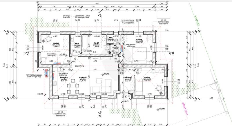 Atkár nyugati részén, a Mátra utcában kínáljuk megvételre ezt az újonnan épülő, földszintes, egylakásos családi házat, amely egy 913 m²-es összközműves telken helyezkedik el. A 94,59 m² hasznos alapterületű ingatlan megbízható, referenciákkal rendelkező kivitelezőtől vásárolható meg – a műszaki tartalom igényesen összeállított, az ár tartalmazza a kulcsrakész állapotot.Főbb jellemzők:Épület típusa: földszintes, önálló családi házHasznos alapterület: 94,59 m²Telek területe: 913 m²Beépítettség: 13,14%Építési mód: oldalhatáron állóHelyiségek: nappali + 3 külön nyíló szoba, konyha, fürdő, WC, háztartási helyiség, előszoba, szélfogóMűszaki tartalom:Szerkezet:Porotherm 30 tégla falazatMonolit vasbeton koszorúFa gerendás födém fenyőfűrészárubólAlapozás: sávalap vasalt aljzattal, megfelelő teherbírásra méretezveTető és szigetelés:Kontytető, 30° hajlásszög, antracit betoncserép héjazat10 cm grafitos homlokzati hőszigetelés (dryvit rendszer)10 cm lépésálló padlószigetelés25 cm ásványgyapot födém szigetelésNyílászárók:Külső: 3 rétegű üvegezésű, hőszigetelt műanyag nyílászárókBelső: választható MDF beltéri ajtókBurkolatok:Hideg és meleg burkolatok választhatók 4.000 Ft/m² értékhatárigGépészet és energia:Fűtés és HMV: levegő-víz monoblockos hőszivattyú padlófűtésselVillamos hálózat: 3 fázisú rendszer, korszerű túlfeszültség-védelemmelEnergiahatékonyság: modern szigetelés, alacsony fenntartási költségekElőkészítések:Napelemes rendszerhez (védőcsövezés tetőre + inverterhely)Riasztórendszer kábelezésElektromos kapu vezérlésKözművek és elhelyezkedés:Teljes közmű: víz, csatorna, villany – bekötveGázellátás nem kerül kiépítésreCsapadékvíz elvezetés: zárt szikkasztóval a telken belülElhelyezkedés: nyugodt, újonnan beépülő lakóövezet, széles utcával, jó megközelíthetőséggelZöldfelületi arány: 78,6%További előnyök:Korszerű LED világítási rendszerUtcafronti kerítés: színezett zsalukő + fa lécezésRugalmas belső kialakítás, még módosítható igény szerintRészletes műszaki dokumentáció és tervrajz kérésre elérhetőMegbízható kivitelező, több referenciával Gyöngyöshalászon és JászberénybenVárható átadás: 2026 I. negyedévIngyenes szolgáltatásaink:INGYENES hitelügyintézés és tanácsadásCSOK+ ügyintézés17 bank ajánlatának díjmentes összehasonlítása, bankfüggetlen hitelcentrumunk segítségévelHa szeretne egy modern, energiahatékony otthonban élni nyugodt környezetben – ez az ingatlan Önre vár!???? Hívjon bizalommal a további információkért vagy megtekintés egyeztetéséért! |