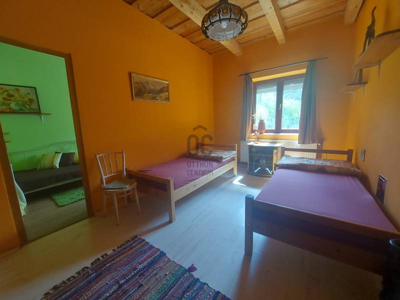 Bakonyszentlászló-Vinyén, a Cuha patak völgyében, a Bakony hegység csúcsai között (Budapesttől 140 km-re) eladó egy igazi kuriózum. A közel 1 hektáros területen található különleges hangulatú ingatlanban 2 önálló lakrész, 3 apartman, önálló közösségi ház, borospince, szauna és kiszolgáló helyiségek találhatóak. A jelenleg is működő apartmanok összesen 27 férőhellyel rendelkeznek, a két lakás pedig lakhatást biztosít a tulajdonosoknak vagy üzemeltetőknek. A ház elrendezése lehetővé teszi akár az átalakítást is, igény szerint a jelenleginél több, kisebb apartman kialakítását. A nyaralásra, táboroztatásra berendezett turistaház jelenleg is működő vállalkozás, amely igény esetén a meglévő előfoglalásokkal és kapcsolatokkal kerülhet átadásra.Elrendezése: - 1. lakrész: Nappali + 2 szoba, fürdőszoba, mosókonyha, kamra, előszoba, terasz kemencével – 70m2- 2. lakrész : Nappali + 1 szoba, konyha, fürdőszoba, WC - 45 m2- Kazánház- Apartman I.: 13 férőhely, fürdő WC-vel – 60 m2 - Apartman II. : 14 férőhely, 2 fürdőszoba + 2 külön WC – 70 m2- Apartman III. : „Kisház” tanári-lak: 2 férőhely, konyha, fürdő WC-vel, tarasz, kis kert – 20 m2- Pince: 3 helyiséges épített borospince- Közösségi ház – 80 m2- Szauna - Valipini (földbe süllyesztett üvegház)Az apartmanok és lakrészek önálló bejárattal és terasszal is rendelkeznek, akár önálló kertrészek leválasztására is van lehetőség. Az eladó ingatlan 40 km-re van Győrtől, Veszprémtől és Pápától; közvetlenül megközelíthető vonattal; de autóval vagy kerékpárral is, aszfalt úton. Vinye a természetet szerető \"bakancsos\" túrázók egyik paradicsoma, a Cuhai-völgykapuként is emlegetik. Valóban kapu ez a hely: belépés nyílik innen egy csodás, nyugodt világba, ahol a levegő kristálytiszta, a patak bájosan csörgedező, a Cuha-völgyi barlangok pedig titokzatosak. A patak, a szurdok, és a tanösvény mellett itt található a kellemesen hűvös vízű Kőpince-forrás, és a Betyár-barlang.Közelben találhatóak – a teljesség igénye nélkül – a Pannonhalmi Apátság, Zirci Apátság, Arborétum, Természettudományi Múzeum, Folklór Színház, fürdőlehetőségek: pápai-, és győri élményfürdők, vadasparkok, állatkertek. Irányár: 280 millió Ft. További információért keressen bizalommal. Hétvégén is elérhető vagyok! |