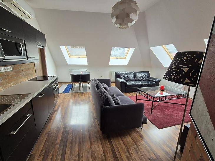 Eladó Budapest belvárosában, a Király utcában, egy igazi kuriózum! Az ingatlan 48 m2-es hasznos alapterülettel rendelkezik, míg a valóságos mérete összesen 64 m2. Az újépítésű lakás szintráépítéssel jött létre egy liftes társasház IV. emeletén.A lakásban két külön nyíló hálószoba van, és egy tágas amerikai konyhás nappali. Minden helyiség utcai nézetű és kifejezetten világos.A kiváló elhelyezkedésnek köszönhetően a Klauzál tér és a környék legjobb szolgáltatásai mind csak pár percnyi sétára találhatók.Ez az ingatlan ideális választás lehet mindazok számára, akik szeretnék élvezni a belváros nyújtotta kényelmet és pezsgést, miközben egy csendes és világos otthonra vágynak. Tökéletes lehetőség akár saját lakásnak, akár befektetésnek!Az adatok tájékoztató jellegűek! |