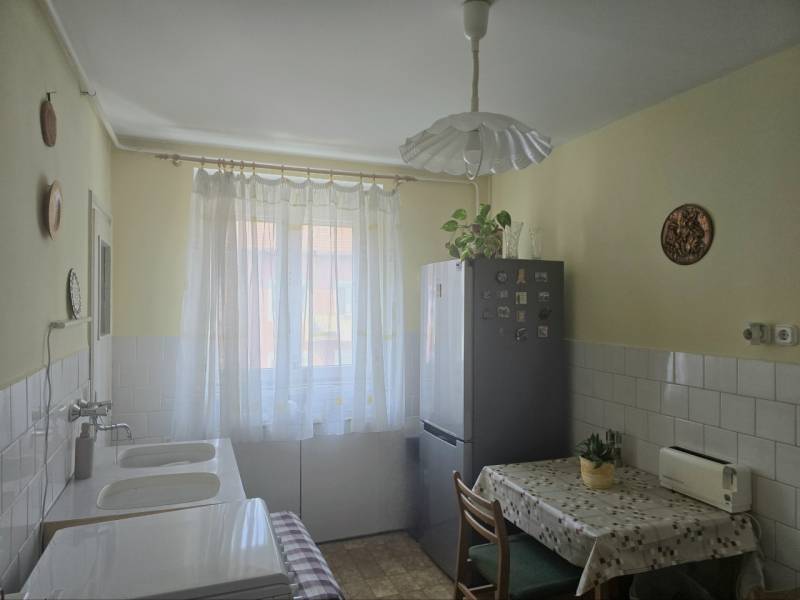Eladó erkélyes, 2 szobás lakás Zalaegerszeg belvárosában, a Vizslapark közelében.Irányár: 33 400 000 FtZalaegerszeg belvárosában, a közkedvelt Vizslapark közvetlen közelében kínálunk megvételre egy 59 m²-es, 2 szobás, erkélykapcsolatos lakást egy kis lakóközösségű társasházban.Az ingatlan egy mindössze 6 lakásos lépcsőház 2. emeletén helyezkedik el, ami nyugodt, csendes lakókörnyezetet biztosít. A lakás jól átgondolt elrendezésű: két külön nyíló szoba, erkélykapcsolattal, külön helyiségben található toalett, a konyha mellett praktikus spejz (kamra), valamint egy felújított fürdőszoba káddal.Külön előnyt jelent, hogy a lakás felett padlástér található, melynek használata biztosított, így további tárolási lehetőséget kínál. Emellett a pincében saját és közös tároló is rendelkezésre áll.Műszaki jellemzők:✅️Nyílászárók cseréje megtörtént (redőnnyel és szúnyoghálóval felszerelve)✅️Villanyvezetékek korszerűsítve (32 Amper)✅️Bélelt kémény✅️Fűtés: gázkonvektor✅️2 db hűtő-fűtő klíma a komfort növeléséért✅️Felújított fürdőszobaKörnyezet és infrastruktúra:A lakás elhelyezkedése kiváló: a belváros minden előnye elérhető közelségben. Óvoda, iskola, boltok, buszmegálló néhány perc sétára található. A Vizslapark közelsége ideális lehet kikapcsolódásra, sportolásra is.Parkolás a ház körül ingyenes.Ajánlom:Az ingatlan ideális választás saját otthonnak, de elhelyezkedése és adottságai miatt befektetésnek is kiváló lehetőség!További információkért, megtekintési időpontért keressen bizalommal! |