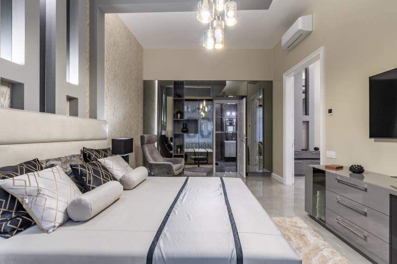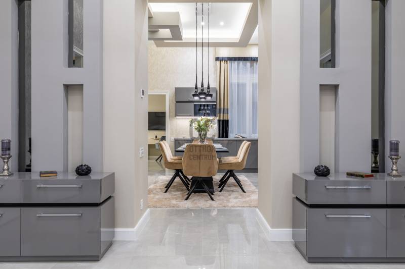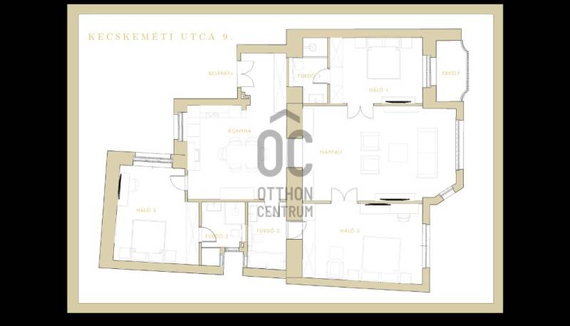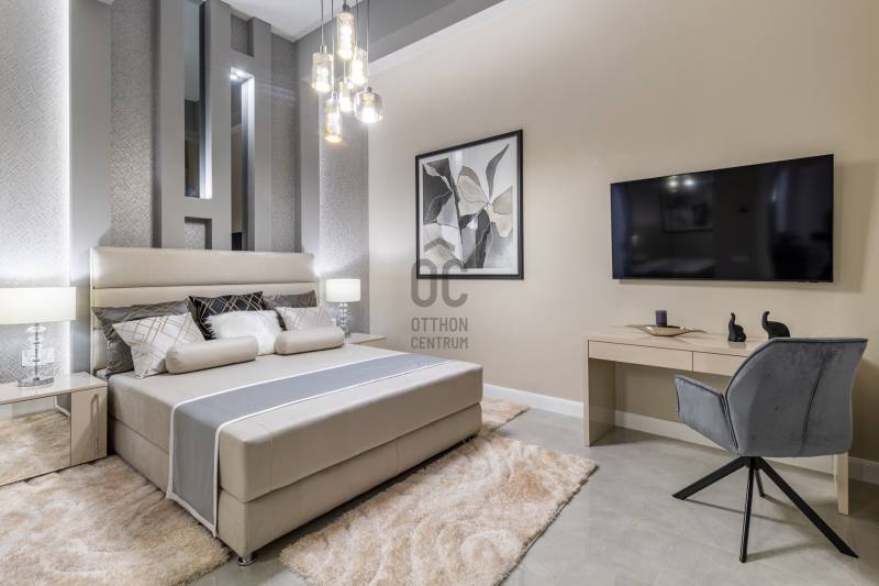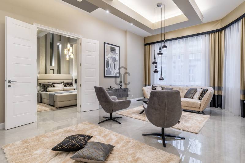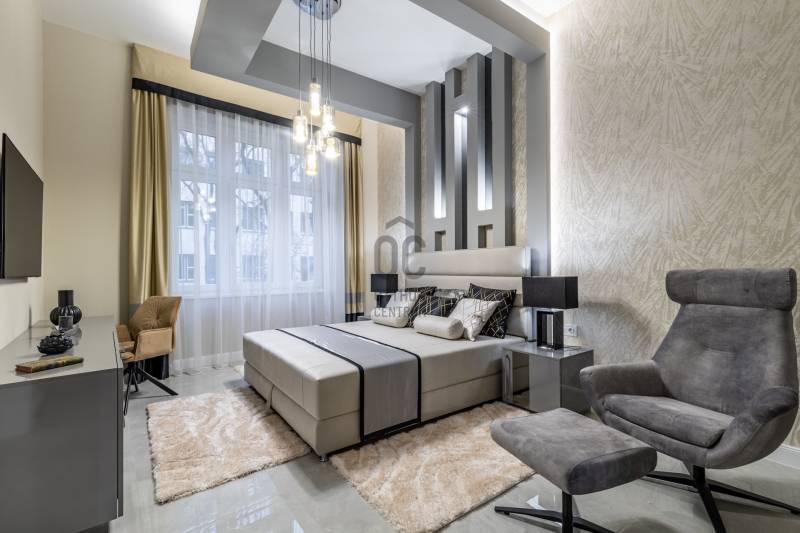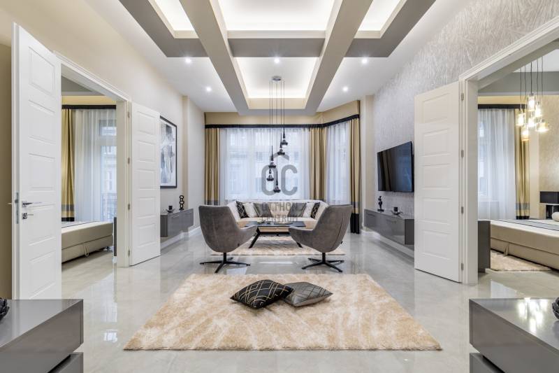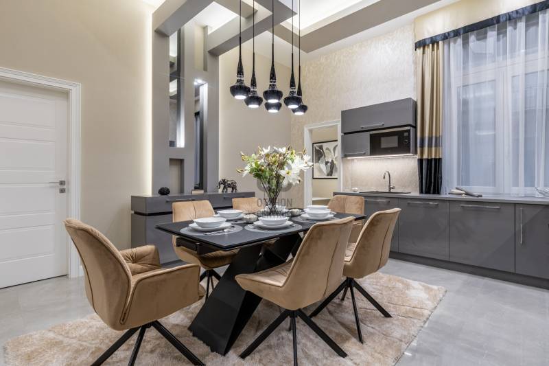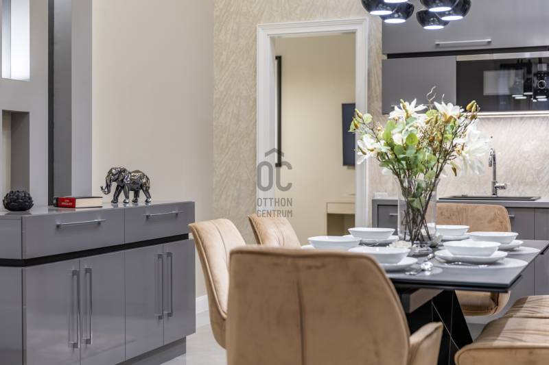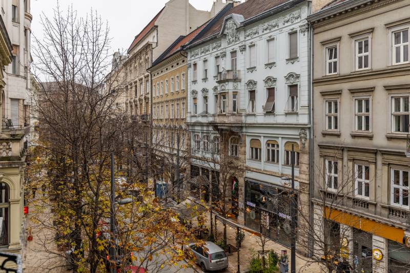 Ez a lakás két szóval jellemezhető: csendes luxus. Üdv itthon! RÖVID ÖSSZEFOGLALÓBudapest, V. kerületében, a fákkal szegélyezett Kecskeméti utcában, pár lépésre a most megújult Egyetem tértől, egy gyönyörű bérház 1. emeletén eladó egy 130 m2-es, keleti fekvésű, utcára néző, nappali+három hálószobás szobás, 3 fürdős, erkélyes, világos, napfényes, gyönyörűen felújított luxus lakás. LOKÁCIÓAz ingatlan Budapest egyik legsűrűbb kulturális és városi szövetében helyezkedik el, mégis élhető, gyalogos léptékű környezetben. Néhány perc sétával elérhető a Károlyi-kert, az Egyetem tér, a Ferenciek tere, a Váci utca, valamint a Duna-part, amely mindössze három perc távolságra húzódik.A környék gasztronómiai kínálata különösen gazdag: a Vén Diák, a The Pointer Pub & Restaurant, a Hummus Bar, a Padthai Wokbar, valamint a Michelin-csillagos SALT mind könnyed sétával elérhetők. A mindennapi bevásárlás szempontjából ideális választás a Nagyvásárcsarnok, az Aldi, a Lidl, továbbá több éjjel-nappali közért és pékség is öt percen belül található.Családosok és befektetők számára egyaránt értékes előny a közeli zöldterület és oktatási infrastruktúra. A Károlyi-kert játszótere, a Váci Utcai Ének-Zenei Általános Iskola, az ELTE, valamint az Apáczai Csere János Gyakorló Gimnázium és Kollégium szintén rövid sétatávolságra helyezkednek el.Autós közlekedés esetén több jól bevált parkolóház biztosít kényelmes megoldást a környéken: a First Site Hotel parkolója (Reáltanoda utca 8.), a Csarnok Parkoló (Csarnok tér 2.), valamint a Mercure Hotel – Magyar utca / Kecskeméti utca parkolója is könnyen elérhető. Városépítészeti szempontból külön értéket képvisel a közeli Franklin-ház (Reáltanoda utca 5.), amely a környék történeti karakterét is erősíti. ÉPÜLETA Kecskeméti utca 9. szám alatti épület egy késő szecessziós–korai modern városi bérház, amely a 20. század elején épülhetett, a pesti polgári bérházépítés egyik átmeneti korszakában. A homlokzat tagolása már eltávolodik a túlzott historizmustól, ugyanakkor még őrzi a szecesszióra jellemző finom plasztikát és díszítő ritmust. Az épület függőleges hangsúlyú kialakítása, a szimmetrikus tengelyrend, valamint a középrizalit mentén sorakozó ívelt, kovácsoltvas mellvédes erkélyek határozott városi jelenlétet adnak a háznak. A kovácsoltvas részletek és az enyhén hullámzó erkélyformák kifejezetten a századforduló körüli szecessziós hatást idézik, míg a homlokzat síkjai már visszafogottabbak, funkcionálisabbak. A nyílászárók arányai, az ablakok feletti és alatti finoman tagolt vakolatdíszek, valamint a visszafogott ornamentika egy igényes, polgári lakóház képét erősítik, amelyet nem reprezentációra, hanem hosszú távú, minőségi városi lakhatásra terveztek. A felső szintek loggiái és erkélyei levegőt és fényt adnak a lakásoknak, ami ebben a belvárosi szövetben különösen értékes.Összességében az épület jó arányérzékű, időtálló karakterrel rendelkező belvárosi bérház, amely építészeti minőségében túlmutat az átlagos városi lakóépületeken. Nem ikonikus műemlék, hanem egy erős, stabil városi ház, amely ma is jól értelmezhető és keresett környezetet biztosít lakófunkció számára. LAKÁSEgy jó nevű belső építész irányításával került kialakításra a lakótér. Fő szempont volt az átépítéskor az élhető luxus ötvözése a high-tech műszaki tartalommal, egy világszínvonalú, a századfordulós Budapest tradícióit tovább vivő, igazi családi otthon létrehozásáért. Az ingatlan teljes körű szerkezeti és gépészeti megújuláson esett át, amelynek során a korszerű technológia és az időtálló minőség került fókuszba. A 2024 -ben történt felújítás célja egy hosszú távon is megbízható, intelligensen működő otthon megteremtése volt.A kivitelezés során vadonatúj aljzatbeton készült, erre épül a wifin keresztül, applikációval szabályozható padlófűtési rendszer. Minden helyiségben extra, négyrétegű kamrával rendelkező hő- és hangszigetelt új nyílászárók kerültek beépítésre, kiegészítve távolról vezérelhető redőnyökkel. Teljes egészében megújult a víz-, fűtési és elektromos hálózat. A lakás világítása okosvezérlésű, applikációval irányítható, amelyet egyedi LED-megoldások egészítenek ki. A komfortot távolról szabályozható klímarendszer és távfelügyeletre kötött riasztó erősíti. Tudatos belsőépítészeti döntések határozzák meg az enteriőr karakterét. Az eredeti, közel 100 éves ajtók mintájára újragyártott beltéri ajtók finom kapcsolatot teremtenek a múlt és a jelen között. A falakat extra minőségű, mosható falfesték borítja, míg a burkolatok között spanyol greslapok és üvegmozaikok jelennek meg. Magas minőségi szint jellemzi a fürdő- és konyhai tereket is. Luxus szaniterek, Grohe csaptelepek és olasz design villanykapcsolók alkotnak egységes rendszert, amelyet kizárólag ide tervezett, egyedi gyártású, magasfényű bútorok tesznek teljessé. Az előszobából nyílik a tágas, világos, rendkívül modern, német gyártmányú luxus gépekkel felszerelt konyha étkező, a lakás központja. Beépített, utcára kivezetett páraelszívó, indukciós főzőlap, hőlégkeveréses sütő, beépített hűtő fagyasztófiókokkal, beépített mikrohullámú sütő, és egy beépített mosó-szárító gép található a konyhabútorban. Innen egy nagy, nyitott átjárón keresztül a párizsi luxustapétával és egyedi, design térplasztikákkal rendkívül elegánssá varázsolt, nappaliba jutunk. A falon egy 70” -os UHD TV biztosítja a nyugodt filmnézést a kanapéról, vagy 