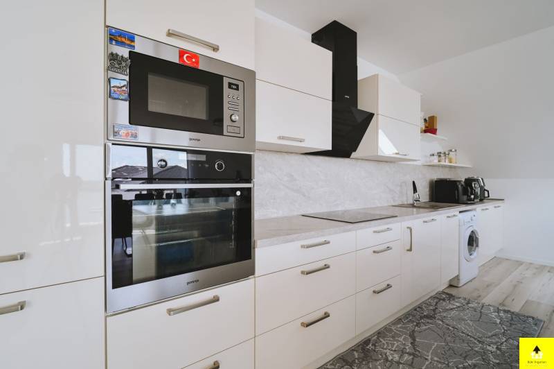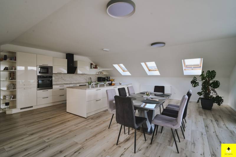 2023-ban átadott, igényes kivitelezésű, új építésű, 16 lakásos társasházban kínálunk megvételre egy igazán különleges hangulatú, tágas és rendkívül világos tetőtéri lakást Bükön, a Penny közelében.A 2. emeleten található, bruttó 158 m²-es, egy szinten elhelyezkedő otthon körben három erkéllyel rendelkezik, így minden napszakban élvezheted a természetes fényt és a panorámás kilátást. Kelet–dél–nyugati tájolása garantálja az egész napos világosságot, a nappaliból nyíló, 18 m²-es erkély pedig tökéletes helyszín a reggeli kávéhoz vagy az esti pihenéshez.Az ingatlan nemcsak látványos, hanem gazdaságos is: A++ energetikai besorolásának köszönhetően fenntartása rendkívül kedvező. Részben bútorozott, biztonsági bejárati ajtóval, klímával, valamint modern, applikációval vezérelhető automata redőnyrendszerrel felszerelt.Elrendezés:• hatalmas, egy légterű nappali–étkező–konyha (igény szerint további hálószoba kialakítható) • 2 külön nyíló hálószoba, mindkettő saját fürdőszobával A lakáshoz igény esetén nagyméretű garázs is vásárolható.Ez az ingatlan tökéletes választás azok számára, akik nemcsak egy lakást, hanem egy exkluzív, napfényes és jól alakítható otthont keresnek nyugodt környezetben. |