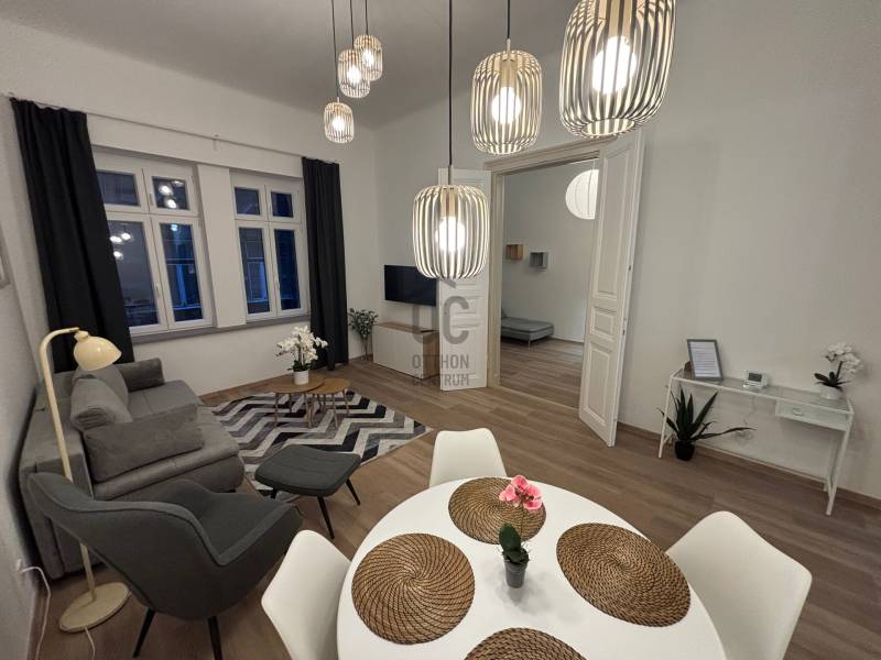 Otthon a pesti Broadway szomszédságában – Modern luxus a belvárosban!Kiadó egy teljeskörűen felújított 84 négyzetméteres 3 szobás dupla komfortos lakás Belső Erzsébetváros egyik legszebb részén a Nyár utca 28 szám alatt.Az épület egy 1884-ben épült patinás eklektikus bérház amelynek 2 emeletén egy minden igényt kielégítő modern otthon várja új lakóit.A lakás szíve a hatalmas nappali amely tökéletes helyszín közös vacsorákhoz vagy tanuláshoz. A két különálló tágas hálószoba mellett két modern fürdőszoba is rendelkezésre áll így reggelente nincs sorban állás. A fűtésről és hűtésről környezetbarát kondenzációs padlófűtés és klíma gondoskodik ami alacsony rezsit és maximális kényelmet biztosít télen nyáron. Minimalista letisztult berendezés gépesített konyha mosógéppel sütővel és hatalmas belmagasság jellemzi az ingatlant.A lakás Belső Erzsébetváros szívében található ahol a történelem találkozik a modern városi pezsgéssel. Pár lépésre található a Madách Imre út és a Kazinczy utca legjobb éttermei speciality kávézói és a Klauzál téri piac. Kiváló az elhelyezkedés mivel az M2 metró Astoria vagy Blaha Lujza tér a 4-6-os villamos és számos buszjárat percek alatt elérhető. Az ELTE a Pázmány a Corvinus és a Semmelweis karai is sétatávolságra vagy rövid tömegközlekedésre vannak.A két külön fürdő és a tágas közös tér miatt ideális választás 2-3 egyetemista vagy lakótárs számára akik prémium környezetben szeretnének lakni. Ugyancsak ajánljuk digitális nomádoknak vagy fiatal pároknak akiknek fontos a belvárosi pörgés de otthon csendre és modern kényelemre vágynak a munkához.Amennyiben bármilyen kérdése merülne fel az ingatlannal kapcsolatban ne habozzon keresni bennünket bizalommal. Szívesen állunk rendelkezésére hogy minden részletet átbeszélhessünk és segítsünk önnek megtalálni az ideális otthont Budapesten. |