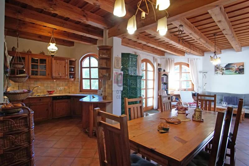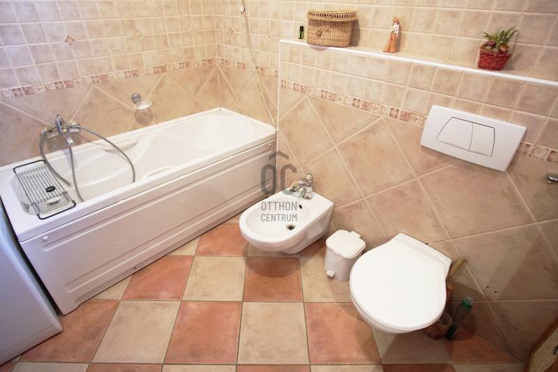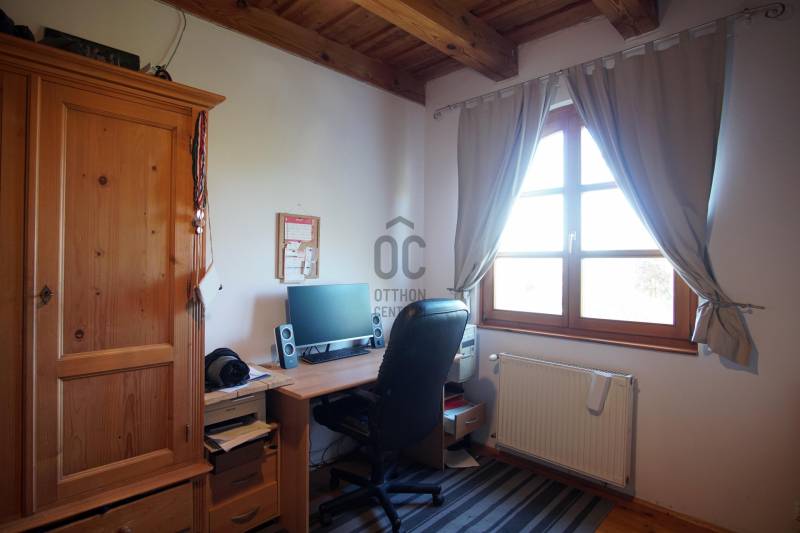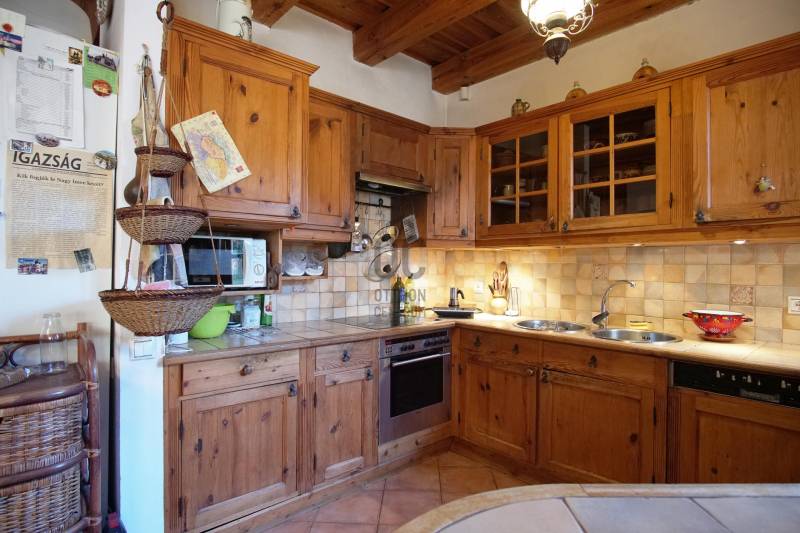\"Vintage\" hangulat Tinnye központjában. Az önálló családi ház , 2000-ben épült, téglafalazatú . Az ingatlan jelenleg 7 szoba + 2 nappali, 130 nm alapterületű, 2 nagy terasszal rendelkezik. A tetőtérben egy további, 130 m2-es lakrész található, melynek egy része még befejezésre vár .A házba az első teraszon keresztül, az előszobába érkezünk meg, innen nyílik a többi helyiség: a nappali + étkező+ konyha , a kamra, a hálószobák, és a fürdőszoba. A hideg és a meleg burkolatok is a vidéki hangulatot fokozzák az ingatlanban. Gépesített konyha, zuhanykabinos fürdőszoba, plusz egy kádas fürdőszoba került kialakításra. A szobák burkolata hajópadló. A nappaliban nagyon hangulatos cserépkályha került megépítésre, mely nem csak egyedi megjelenésű, de télen a ház fűtéséről is gondoskodik. A nappaliból közvetlenül mind a két 12 nm-es, részben fedett teraszra és a kertbe léphetünk ki.Fűtés gázcirkóval megoldott, padlófűtés, a szobákban pedig radiátoros fűtés.A KERT:A kert hangulatos, teraszos kialakítású tele zöld növényekkel, örök zöldekkel, tarka virágokkal. A kertben pihenő sziget is helyet kapott, ahol grillezhetünk, sütögethetünk és fogadhatjuk a vendégeinket minden évszakban.A kertben van hely akár egy télikert kialakításra, illetve egy kisebb medence/jakuzzi elhelyezésére is. A kerti szerszámok elhelyezése a kert végében egy hangulatos kis tégla ház ad teret. Jelen kialakítás szerint nagy családoknak jó szívvel ajánlom. A tetőtér befejezését követően 2-3 generáció együtt élésére is meghitt családi otthon lehet az ingatlan. Iskola, óvoda, bevásárlási és sportolási lehetőségek elérhetőek néhány perces távolságban.Jöjjön el, nézze meg a házat, érezze a helyszínen is, hogy ez a vidéki hangulatú ház akár lehet az álmai otthona! |