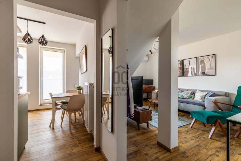 Fény, forma és funkcionalitás – Kétszintes városi loftérzés a Thaly Kálmán utcában. - Üdv itthon!RÖVID ÖSSZEFOGLALÓBudapest IX. kerületének kedvelt részén, a Belső Ferencvárosban, a Thaly Kálmán utcában, 2007-ben épült, liftes társasház 5. emeletén kiadó egy 64 m²-es, két szintes, 3 szobás, DNY-i tájolású, kiváló állapotú lakás, 6 m²-es erkéllyel és városi panorámával. A belmagasság 265 cm, a fűtést gáz (cirkó) biztosítja. A lakás részben bútorozott, kulcsos, azonnal birtokba vehető.A bérleti díj: 400 000 Ft/hó + a garázs, amely 25 000Ft/hóLOKÁCIÓ – Belső Ferencváros megújult hangulataA Thaly Kálmán utca egyike a IX. kerület legkellemesebb utcáinak: csendes, mégis néhány perc sétára a Nagykörúttól, a Mester utcától és a Duna-parttól. A környék folyamatosan fejlődik, új éttermek, kávézók, galériák és kis üzletek nyílnak, miközben a régi, polgári házak és az új építésű társasházak harmonikusan illeszkednek egymáshoz.A közlekedés kiváló: pár perc séta a 3-as metró, a 4-6-os villamos, valamint több busz- és trolijárat. Az egyetemek közelsége (Corvinus, ELTE, BME) és a kulturális intézmények gazdag választéka vonzóvá teszi a környéket a fiatal szakemberek és diákok számára egyaránt.A HÁZ – modern komfort, gondozott közösségA 2007-ben épült, tégla szerkezetű társasház modern építészeti megoldásokat kínál, miközben a belső terek egyszerre praktikusak és esztétikusak. A liftes épület homlokzata jó állapotú, a lépcsőház tiszta és rendezett. A lakóközösség igényes, a ház gondozott állapota garantálja a nyugodt, biztonságos mindennapokat.A LAKÁS – két szinten, napfényes terek, panorámás erkélyA 64 m²-es lakás elrendezése ideális:Alsó szint: előszoba (2 m²), 22 m²-es nappali, 9 m²-es konyha-étkező, külön WC-kézmosó, valamint 6 m²-es erkély DNY-i tájolással és városi panorámával.Felső szint: közlekedő (3 m²), két különnyíló hálószoba (egyenként 8 m²), valamint fürdőszoba WC-vel (4,2 m²).A lakás modern bútorokkal teljesen berendezett, a nagy üvegfelületeknek köszönhetően egész nap világos. Az elrendezés kiválóan alkalmas akár párok, akár kisebb családok számára.AJÁNLÁS – városi életet kedvelőknek, családoknak, diákoknakEz a lakás ideális választás:Fiatal pároknak, akik a belváros közelében keresnek modern, kényelmes otthont.Kis családoknak, akik értékelik a két szintes elrendezést és a tágas nappalit.Diákoknak vagy fiatal szakembereknek, akik számára fontos a közlekedési csomópontok és egyetemek közelsége.A Thaly Kálmán utcai lakás egyszerre kínál modern kényelmet, kiváló elhelyezkedést és nyugodt környezetet – mindezt teljes berendezéssel és azonnali költözési lehetőséggel. |