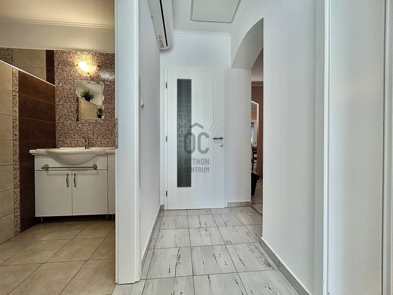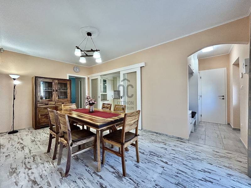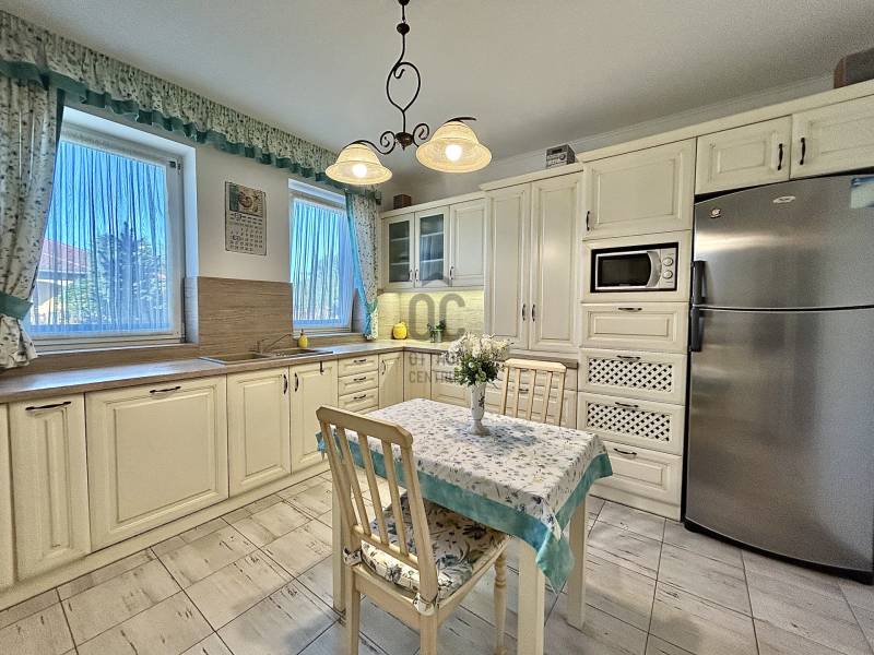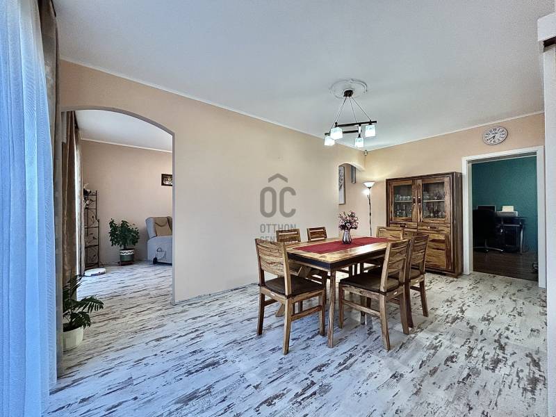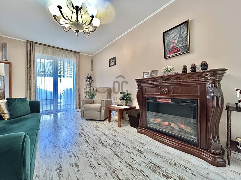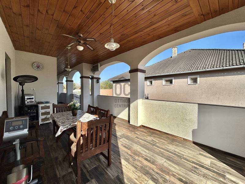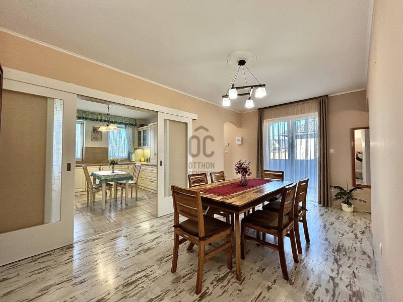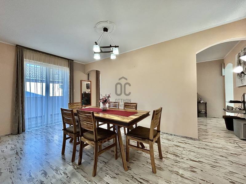 Vámosszabadi egyik legkedveltebb, nyugodt zsákutcájában kínálok megvételre egy 2019-ben épült, modern és korszerű családi házat.Az ingatlan fiatal korának köszönhetően minden szempontból megfelel a mai elvárásoknak, ráadásul tavaly teljes körű festésen esett át, mely során a természetes szerkezeti mozgásokból adódó apró repedések is javításra kerültek. Ennek köszönhetően az otthon friss, újszerű megjelenést kapott.Stílusa igazán különleges: a modern építészet letisztultsága találkozik a hagyományos parasztházak meghitt hangulatával, így teremtve egyedi és otthonos atmoszférát.Az ingatlan praktikus elrendezésű:3 szoba + tágas nappali biztosítja a kényelmes életteret. Amennyiben az étkezőt egy légtérben képzeled el a nappalival, a jelenlegi elrendezés könnyedén átalakítható a médiafal eltávolításával.A ház része továbbá egy külön háztartási helyiség, valamint egy hatalmas padlástér, amely ideális minden ritkábban használt tárgy tárolására.A melegről gáz cirkó fűtés gondoskodik, padlófűtéses hőleadással, míg a nyári hőségben klíma biztosítja a kellemes hőmérsékletet. A műanyag nyílászárókhoz egyedileg készített függönyök tartoznak, az ingatlan biztonságát pedig riasztórendszer garantálja.A külső tér legalább annyira meggyőző, mint a belső:A tágas terasz tökéletes helyszín a pihenésre, míg az öntözőrendszerrel és fúrt kúttal ellátott kert valódi, gondtalan zöld oázist teremt.A kertben helyet kapott egy garázs, valamint egy hangulatos nyárikonyha is, ahol a hűvösebb napokon szauna gondoskodik a kikapcsolódásról és feltöltődésről.A következő lépés nálad van. A többit bízd rám - hívj, és megyünk tovább.Hitelre van szüksége?Az Otthon Centrum, az ország egyik legnagyobb és legmegbízhatóbb hitelközvetítője, teljes körű és díjmentes hitelügyintézéssel, valamint biztosításkötéssel segíti ügyfeleit.Kérje kollégáinktól személyre szabott ajánlatát, és találja meg a legjobb megoldást gyorsan és egyszerűen!Az ingatlan a \"FELEZŐ CSOMAG\" portfóliónkhoz tartozik. A konstrukció sajátosságairól keresd bizalommal kollégáinkat vagy látogass el weblapunkra.\"Az energetikai tanúsítvány elkészítése folyamatban van, melynek elkészültét követően hirdetésünk haladéktalanul frissítésre kerül\"Ez az ingatlan a \"Felező csomag\" megbízási portfólióhoz tartozik. Részletek az Otthon Centrum weboldalán. |
