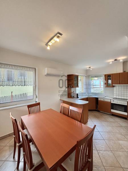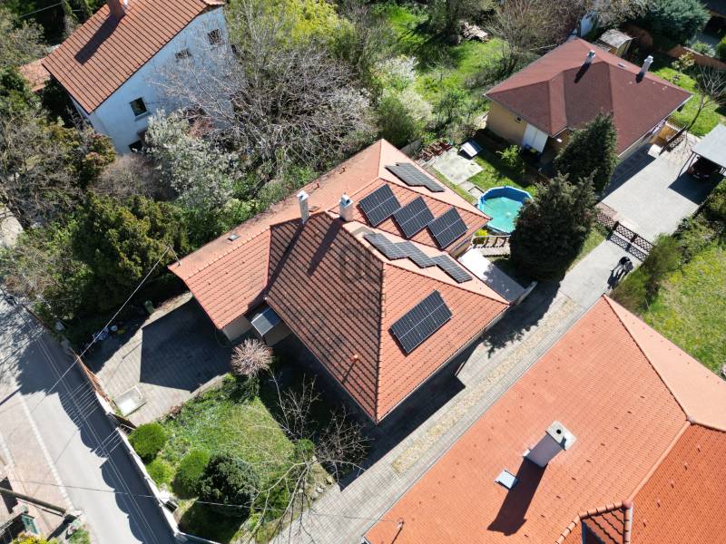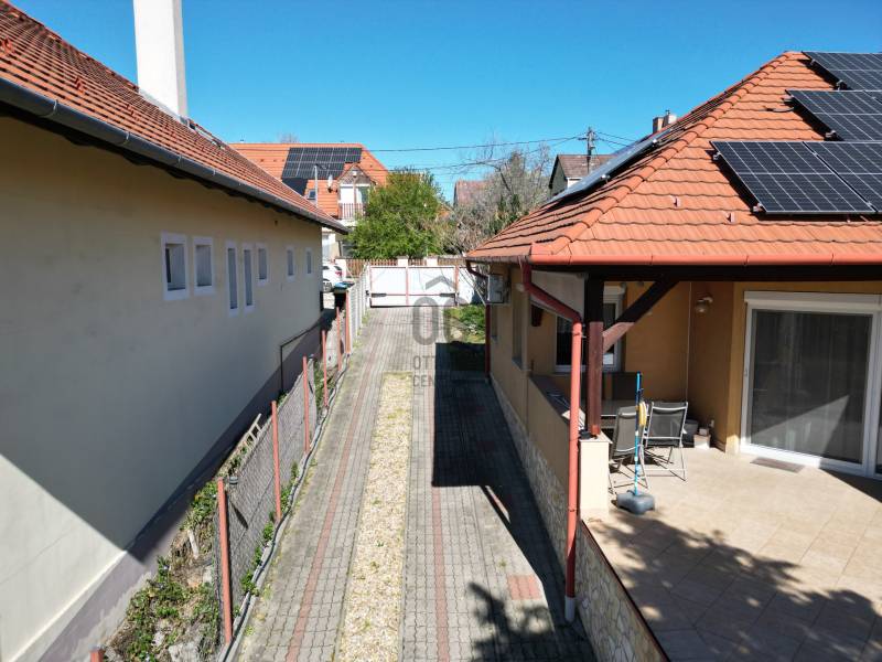 Eladásra kínálunk Diósd csendes, mégis központi részén egy 2001-ben épült, nettó 143 nm-es, kiváló elosztású, földszintes családi házat. Az ingatlan nyugati tájolásának köszönhetően egész nap fürdik a fényben, a naplementéket pedig a saját, panorámás teraszáról élvezheti!A ház nemcsak esztétikailag, de műszakilag is kiemelkedő: a szigetelésnek és a kiépített napelemrendszernek köszönhetően fenntartási költségei rendkívül kedvezőek.Az ingatlan elosztása és belső jellemzői:Tágas közösségi tér: A ház szíve a hatalmas, világos nappali, amelyben egy hangulatos kandalló is helyet kapott, tökéletes helyszínt biztosítva a családi összejöveteleknek.Modern konyha: Gépesített, modern konyha, amelyhez egy rendkívül praktikus, különálló kamra is tartozik.Privát szféra: Két kényelmes hálószoba található a házban. Az egyik hálószoba igazi \"master bedroom\", hiszen saját, privát fürdőszobával rendelkezik.Wellness a mindennapokban: A tágas fő fürdőszoba a teljes ellazulást szolgálja, egy beépített szaunával és egy masszázskáddal felszerelve.Műszaki tartalom és extrák:Energiatakarékosság: A ház külső szigeteléssel és napelemrendszerrel van ellátva.Klímatizáció: Hűtő-fűtő klíma gondoskodik a megfelelő hőmérsékletről az év minden napján.Nyílászárók: Korszerű műanyag ablakok és ajtók, amelyeket kényelmesen kezelhető elektromos redőnyökkel szereltek fel.Bővíthetőség: A tetőtér beépíthető, így igény esetén további szobákkal, életterekkel bővíthető az ingatlan.Telek és parkolás:A ház egy 560 nm-es, saját használatú telekrészen fekszik. Bár jogilag osztatlan közös tulajdon, a terület használatát hivatalos ügyvédi megosztás rögzíti, így hitelezhető és jogilag teljesen tiszta.A kertészkedést és a gazdaságos vízhasználatot egy 9 köbméteres esővízgyűjtő (ciszterna) segíti.A parkolás egy saját, különálló garázsban megoldott, amelyben a maximális helykihasználás érdekében egy galéria is kialakításra került, így tárolónak is kiváló.Kinek ajánljuk?Tökéletes választás azoknak, akik egy azonnal költözhető, alacsony rezsijű, modern és kényelmes otthont keresnek Budapest közvetlen közelében, egy nyugodt, de kiváló infrastruktúrával rendelkező városrészben. |