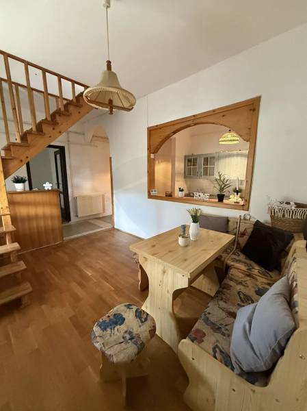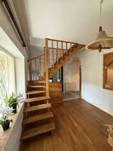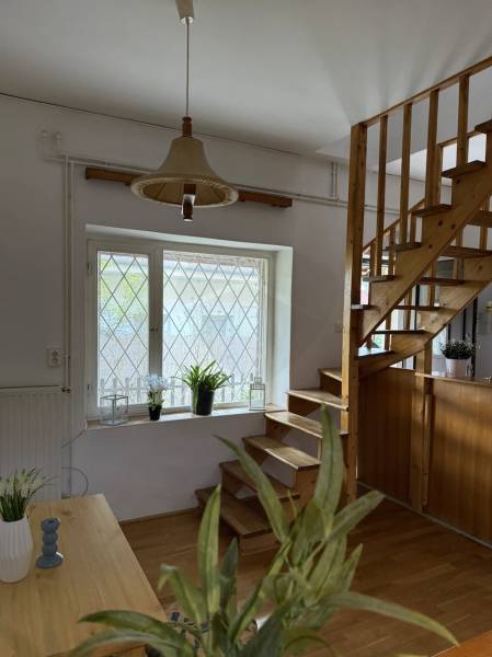 Egy régi parasztház jellegű épületrészben, amely a múlt karakterét és a jövő lehetőségét egyesíti a 77 m² lakótér + 18 m² fedett teraszhoz tartozik egy külön tároló helyiség, valamint önálló bejárat és saját autóbeálló is biztosított.Főbb jellemzők:- Belső 2 szint- 3 szoba + gardrób- Étkező-konyha egybenyitva, hangulatos boltíves megoldással- Gázfűtés, radiátoros hőleadással- Fedett terasz (18 m²)- Külön tároló- Önálló bejárat- Saját autóbeálló (igény esetén kertként is hasznosítható)Az ingatlan felújítást igényel, azonban éppen ez adja a valódi értékét:egy jól átgondolt korszerűsítéssel egyedi karakterű, modern otthonná alakítható, miközben megőrzi a régi építésű házak semmihez sem hasonlítható hangulatát.Lokáció – ami mindig érték marad:- Budakeszi központi része- Kiváló közlekedés Budapest irányába- Iskola, óvoda, üzletek, buszmegálló a közelben- Gyors elérhetőség autóval és tömegközlekedésselKinek ajánljuk?- Saját célra felújításban gondolkodóknak, akik látnak fantáziát a karakteres terekben, és örömmel formálnak belőle egyedi otthont- Befektetőknek, akik gyorsan kiadható, jól elhelyezkedő ingatlant keresnek, és értéknövelő felújításban gondolkodnak- Fiatal pároknak, akik első közös otthonukat keresik, és fontos számukra a központi elhelyezkedés + élhető, csendes környezet kombinációja- Egyedülállóknak, akik értékelik a jó közlekedést, a közelséget a mindennapi infrastruktúrához, de nem szeretnének lemondani egy meghitt, nyugodt otthonról- Azoknak, akik nem sablon lakást keresnek, hanem egy hangulattal, múlttal és lehetőséggel rendelkező ingatlant |