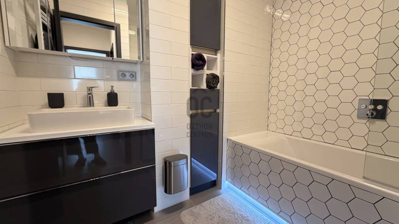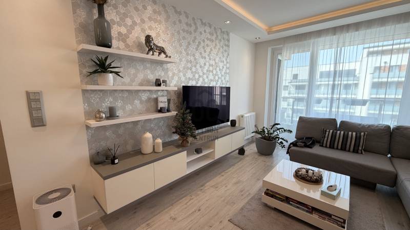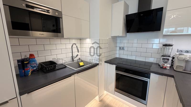 Eladó a 13. kerületben, a Göncz Árpád városközpont közelében egy 5. emeleti, rendkívül világos, nettó 48 nm alapterületű, nappali + hálószobás, 9 nm-es terasszal rendelkező, téglaépítésű lakás egy 2018-ban épült, modern társasházban.LAKÁS– Nyugati tájolásának és magas emeleti elhelyezkedésének köszönhetően rendkívül világos, és a naplemente is gyönyörű a teraszról.– Lakberendező által saját célra tervezett, igényesen kialakított, minőségi bútorokkal berendezett.– Prémium, teljesen gépesített konyha Electrolux gépekkel, modern indukciós főzőlappal, sütővel, hűtővel és mosogatógéppel, valamint minőségi szaniterekkel (Hansgrohe, Grohe, Laufen, Roca).- Mindkét szobából kijárat nyílik a 9 nm-es műfüves teraszra, amely tökéletes hely a reggeli kávéhoz vagy egy kis pihenéshez.– A nyílászárókon elektromos alumínium redőny és pliszé szúnyogháló található, amely teljes árnyékolást, csendet és komfortot biztosít.– Házközponti, egyedi mérésű fűtés biztosítja az ALACSONY és pontosan jól követhető rezsit.– A nappaliban és a hálóban külön hűtő-fűtő klíma található, távolról vezérelhető rendszerrel, biztosítva nyáron is a kellemes hőmérsékletet.- 2 db Zehnder szellőztetőrendszer került beépítésre, amely folyamatosan gondoskodik a friss, szűrt levegő utánpótlásáról.– A lakás több pontján LED világítás került kiépítésre, ami hangulatos és igényes fénymegoldásokkal dobja fel az ingatlant.– Paradox LED kijelzős, mobilalkalmazáson keresztül is elérhető riasztórendszer biztosítja a teljes körű védelmet és nyugalmat.- Önálló helyrajzi számmal rendelkezik, 1/1-es tulajdonban vanTÁRSASHÁZ- 2019-ben átadott, modern műszaki tartalommal épült, értékálló projekt.- 2 lifttel rendelkezik, folyamatosan karbantartott állapotban.- Barátságos, rendezett, kulturált lakóközösség jellemzi.– A belső udvar igényesen kialakított és gondozott, kellemes zöld környezetet biztosít a lakók számára.KÖRNYÉK, KÖZLEKEDÉS- A társasház egy csendes, forgalommentes lakó-pihenő övezetben helyezkedik el.– A környék infrastruktúrája kiváló: éttermek, kávézók, bankok, edzőtermek, iskolák, óvodák, játszóterek, valamint több élelmiszerbolt (Aldi, Lidl, Spar, illetve a ház aljában található ABC és további üzletek) mind rövid sétatávolságon belül elérhetők.– A Göncz Árpád városközpont közelségének köszönhetően a 3-as metró, az 1-es és 14-es villamos, valamint számos BKV és VOLÁN járat révén a város bármely pontja könnyedén elérhető, akár az esti órákban is.– A Margit-sziget, a Duna Pláza és a Westend bevásárlóközpont tömegközlekedéssel nagyjából 15 percen belül elérhető.PARKOLÁS– Külön megvásárolható egy SUV méretű, extra széles mélygarázs-beálló, amely kényelmes parkolást biztosít nagyobb méretű gépjárművek számára is.A lakás kiváló választás saját célra, mivel minden részlete a kényelmes mindennapi használatot szolgálja és magas szintű komfortot biztosít, elhelyezkedésének köszönhetően pedig befektetésként is kiemelkedően jó lehetőség.Az energetikai tanúsítvány készítése folyamatban van, amint rendelkezésre áll, úgy azzal a hirdetés frissítésre kerül.Ha szeretné megtekinteni, hívjon bizalommal! |