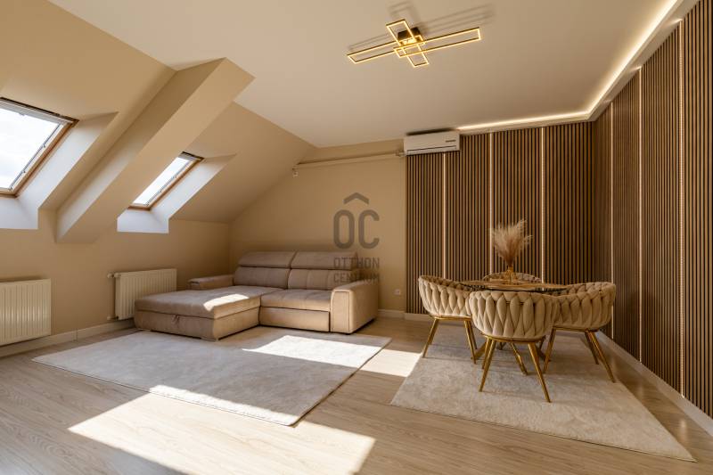 Budapest VI. kerületében, az Izabella utcában, liftes, rendezett, jó állapotú társasház legfelső emeletén kínálok megvételre egy nappali + 3 szobás, kiváló állapotú lakást.Ami igazán kiemeli: a legfelső szint nyugalma és a terek aránya. A lakás hasznos alapterülete 90 m², míg a tulajdoni lap szerint 82 m². A tetőtér-ráépítés 2012-ben történt, így egy klasszikus belvárosi ház hangulatát kapod meg, modernebb műszaki tartalommal és élhetőbb kialakítással.Ez az a típusú lakás, ami egyszerre ad otthont és hosszú távon is értéket. Világos, jól használható terek, jó elosztás – akár saját részre keresel, akár befektetésben gondolkodsz, stabil választás.LAKÁSAz utcai nézet és a legfelső emeleti elhelyezkedés együtt egy világos, nyugodt életteret ad, amit a tető felett megnyíló, Citadellára néző panoráma tesz igazán különlegessé. Ehhez társul a kiváló térszervezés és a nagy alapterület, valamint a 2,8 méteres belmagasság és a déli tájolás, így a lakás egyszerre tágas, napfényes és valóban kényelmes, jól élhető mindennapokat biztosít.A központi élettér egy közel 42 m²-es nappali–konyha, amely már kialakított, jól működő térként szolgál. A nappali, az étkező és a konyhai rész harmonikusan kapcsolódik egymáshoz, így a mindennapi használat és a vendégfogadás is kényelmesen, természetesen működik.A lakás további három szobája külön nyílik, így jól szeparált, nyugodt tereket biztosít. Az egyik tágas hálószobaként ideális, a másik kényelmes második szobaként használható, míg a harmadik – méretéből adódóan – tökéletes dolgozónak, gardróbnak vagy gyerekszobának. Az elrendezés átgondolt, a helyiségek jól elkülönülnek, mégis harmonikusan kapcsolódnak egymáshoz.A fürdőszoba és a mellékhelyiség egy térben kapott helyet, méretének köszönhetően kényelmesen használható. Az előszoba jól szervezhető, praktikus tárolási lehetőségeket kínál, így a lakás belépőtere is rendezett marad.Összességében egy jól átgondolt, tágas és napfényes lakásról van szó, amit nem kell átalakítani vagy újragondolni – már most is működik. Saját otthonnak és befektetésnek is egyaránt erős választás.HÁZAz Izabella utca 77. szám alatti társasház az 1990-es években épült, klasszikus belvárosi hangulatot idéző épület. 2012-ben teljes körű megújuláson esett át, melynek keretében tetőráépítés is történt – ennek részeként került kialakításra a jelen hirdetésben szereplő lakás.A társasház rendezett, karbantartott, kulturált lakóközösséggel rendelkezik. Minden fogyasztás (víz, villany, gáz) egyedi mérés alapján fizetendő, a lakás fenntartási költségei pedig kedvezőek a modern gépészetnek és energiahatékony megoldásoknak köszönhetően.PRESZTÍZS KÖRNYEZETSéta távolságon belül a világörökség részét képző Andrássy út, az Oktogon, a Kodály körönd, mely Magyarország történelmének egyik legjelentősebb helyszíne. Már a világ első metrója (M1) is megállt itt, mely szintén a világörökség részét képzi. Számtalan politikai-, sport-, illetve kulturális eseménynek, felvonulásnak adott otthont a környék az elmúlt évtizedekben.Nemzetközi szintű épületek szomszédságában, mint a Néprajzi Múzeum, Magyar Zene Háza, Iparművészeti Múzeum, Hősök tere töltheti mindennapjait. Néhány percre a méltán ismert Diplomatanegyedtől, valamint gyönyörűen felújított Városligettől.Miért érdemes a környékre költöznie?- történelemmel átitatott városrész, mely szinte minden nap tud valami újat mutatni- kiváló tömegközlekedés - M3, M1, 4-6 villamos, Nyugati pályaudvar- város a városban, gyalog is intézheti mindennapjait- kultúra melegágya - színházak, Terror Háza, Liszt Ferenc Emlékmúzeum, Kodály Zoltán Emlékmúzeum, Szépművészeti Múzeum, Néprajzi Múzeum- infrastrukturálisan jól felszerelt - bevásárlás, éttermek, szépségszalon, fodrászat, bank stb.- kikapcsolódás - Műcsarnok, Városliget, séták a villanegyedben- legközelebbi bevásárló központ - WestEndEz a környék tökéletes választás azok számára, akik a belvárosi élet pezsgését szeretnék élvezni, miközben értékelik a történelmi utcák eleganciáját és hangulatát. A klasszikus városi környezet és a modern, tetőráépítésben kialakított lakás különleges egységet alkot: itt a múlt karaktere és a jelen komfortja valódi harmóniában találkozik.Ha egy egyedi hangulatú, élhető és értékálló otthont keres Budapest szívében, ezt a lakást érdemes személyesen is megnézni. Várom hívását!----------------------------------------------Díjmentes, bankfüggetlen hiteltanácsadással támogatjuk vevő ügyfeleinket a számukra legelőnyösebb finanszírozási döntések meghozatalában. Opcionálisan igénybe vehető kiegészítő szolgáltatásainkkal – mint ügyvédi közreműködés, energetikai tanúsítvány vagy villamos biztonsági felülvizsgálat – teljes körű szakmai támogatást nyújtunk az adásvétel folyamatának minden egyes lépésénél.A hirdetésben szereplő információk tájékoztató jellegűek. A tévedés és az árváltoztatás jogát fenntartjuk. Az esetleges elírásokért és technikai hibákért felelősséget nem vállalunk.Lakásbiztosításban is otthon vagyunk!Ingatlan és biztosítás egy helyen! Szakértő kollégáink segítenek megtalálni a legmegfelelőbb ajánlatot.Lakásbiztosításban is otthon vagyunk!Ingatlan és biztosítás egy helyen! Szakértő kollégáink segítenek megtalálni a legmegfelelőbb ajánlatot. |