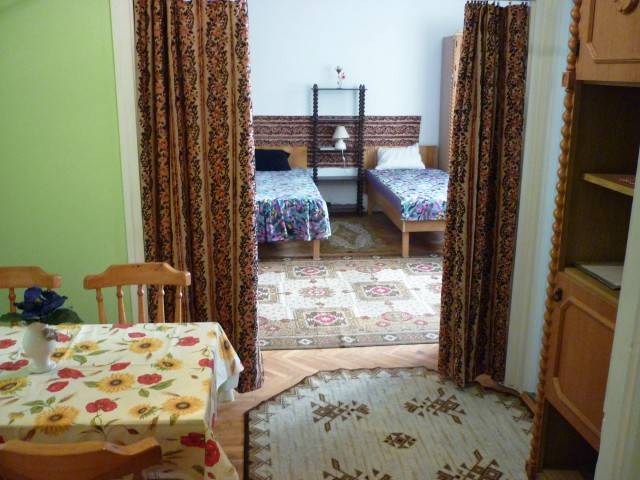 Helyiségek: szoba, étkező, konyha, fürdőszoba, Wc, spájz, közlekedő. A lakáshoz tartozik pince rész és tároló, közös udvar. Gázkonvektoros.